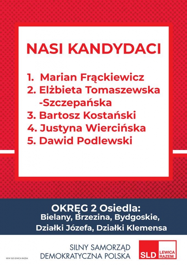 Kandydaci i Kandydatki KKW SLD Lewica Razem do Rady Miasta Torunia